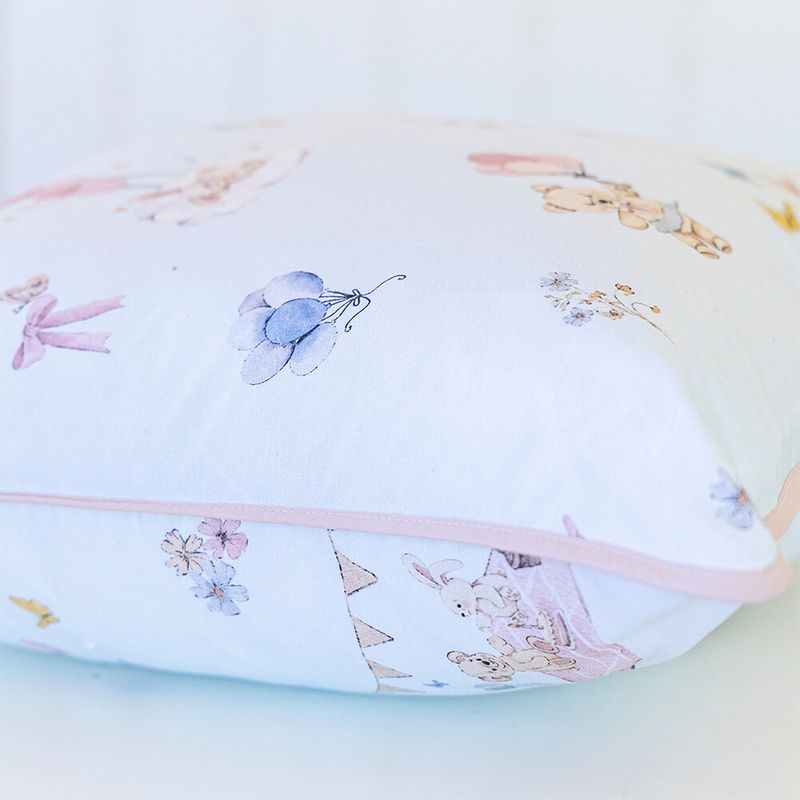 Almofada Percal 200 fios – 100% Algodão Teddy estampadoO ursinho de pelúcia é o primeiro amigo de muitas crianças — símbolo de carinho, segurança e companhia. Inspirada nesse vínculo, a Coleção Teddy da Linha Bambini traz estampa digital exclusiva, em azul suave com toques de rosa, que transformam o quarto em um refúgio de ternura. Desenvolvida em Percal 200 fios, 100% algodão – fio penteado, a coleção é composta por: Jogo de berço, Jogo de lençol, colcha matelassê dupla-face, edredom dupla-face, fronhas avulsas, toalhinha com capuz, toalhinha de rosto e mantinha soft dupla-face perfeita para o berço ou o carrinho.