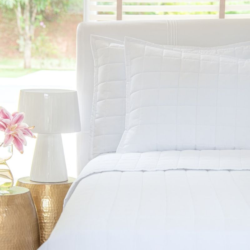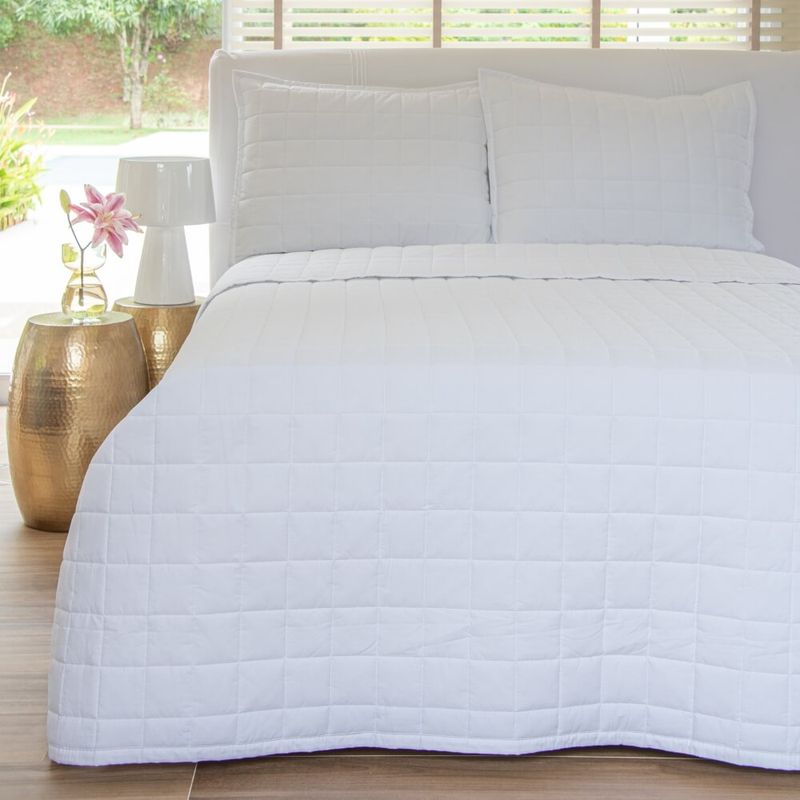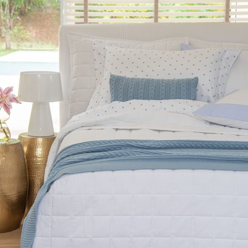 A colcha lisa é perfeita para combinar com estampas florais e geométricas, deixando a cama organizada e prática.
