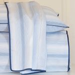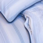 Duvet dupla-face Oxford AzulDuvet estampado listrado em tons de azul dos dois lados, acabamento com vivo azul-marinho no barrado. Fechamento com zíper. Acompanha fronha modelo envelope 50x70cm estampada listrada em tons de azul e acabamento com vivo azul-marinho