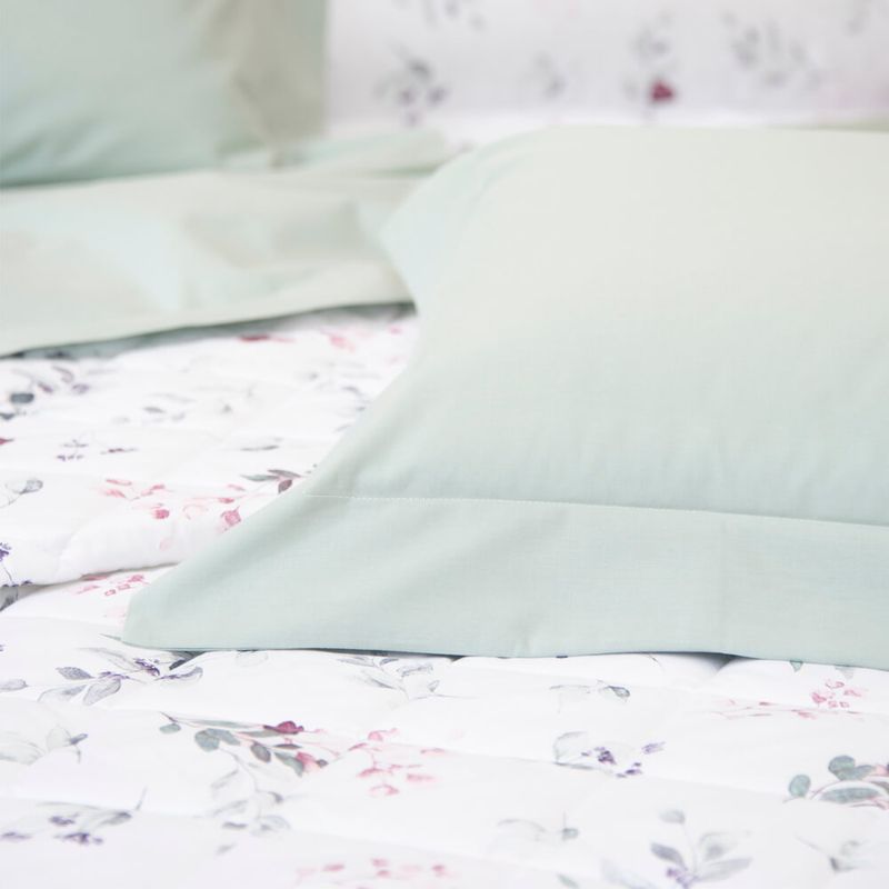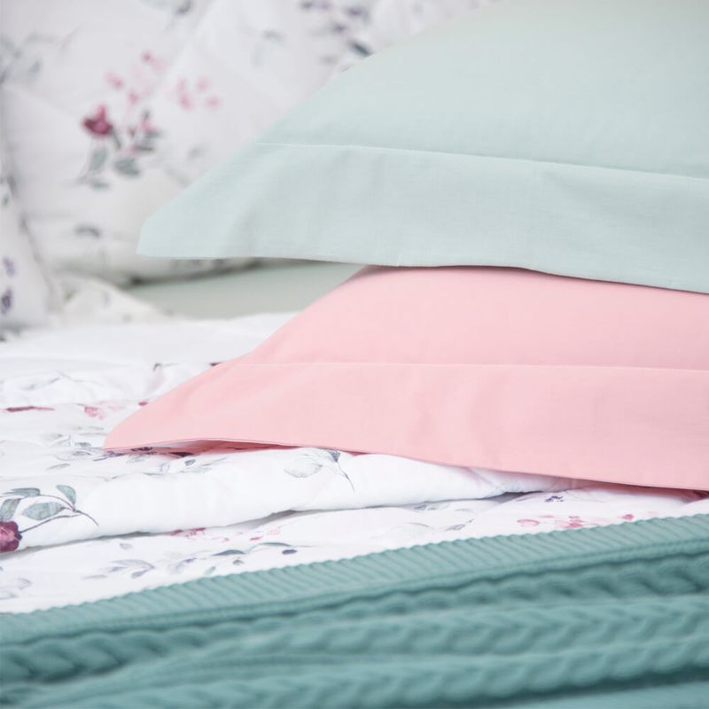 Fronha lisa 03 abas com acabamento em costura reta.Em tecido Percal Soft 200 fios, 100% Algodão – fio penteado.