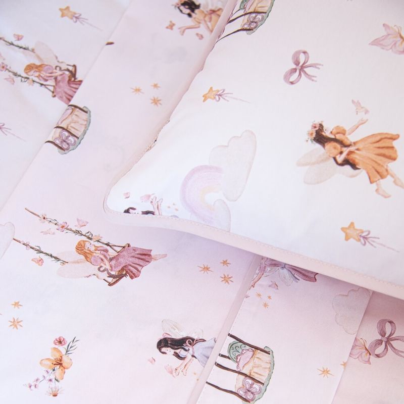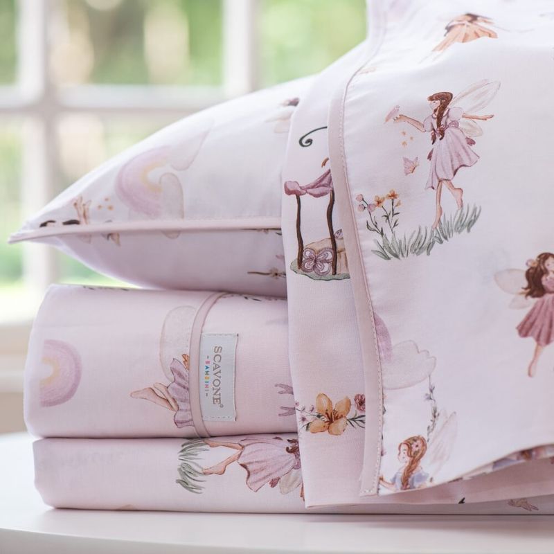 Fadas, magia, cores, estrelas, flores e muitos sonhos, em um enxoval delicado e exclusivo! Esta é a Coleção Fadas da linha Bambini de Scavone Casa. A estampa digital repleta de fadas e detalhes em tons de rosa, encantam o quarto das crianças, com uma linha completa de roupa de cama.