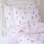 Lençol Inferior com elástico estampado em tons de rosa e fadas;