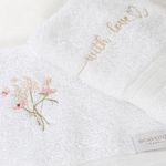 bordados delicados, que transmitem aconchego, cuidado e sofisticação, deixando o lavabo ainda mais acolhedor. Um presente perfeito para mães que apreciam detalhes, beleza e qualidade no dia a dia.