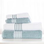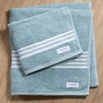 A toalha de rosto Scavone fio penteado é colorida com listras na cor branca no barrado.
